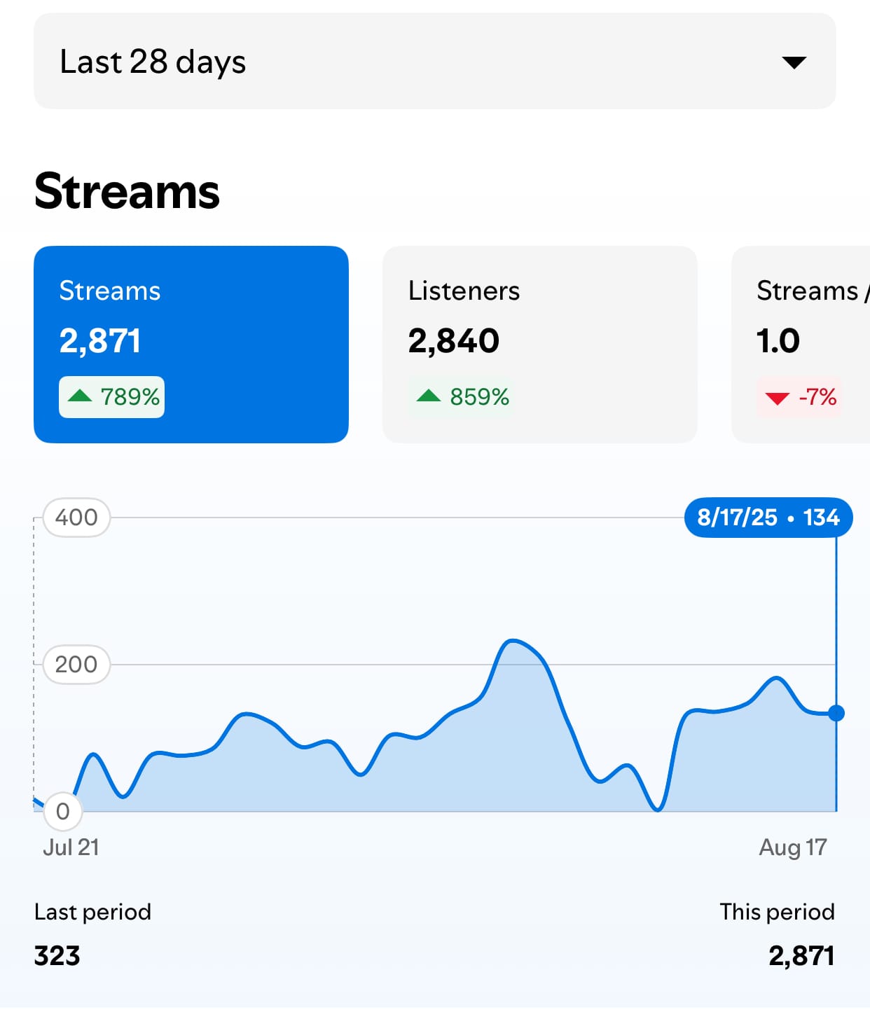 So, 2,840 listeners in 28 days for a really bizarre sub-genre. Is that good? It’s better than I expected. At least I didn’t have to go through the bother of trying to hunt down playlists and then pitch my song to them. And now I have and idea of which playlists to pitch to in the future.