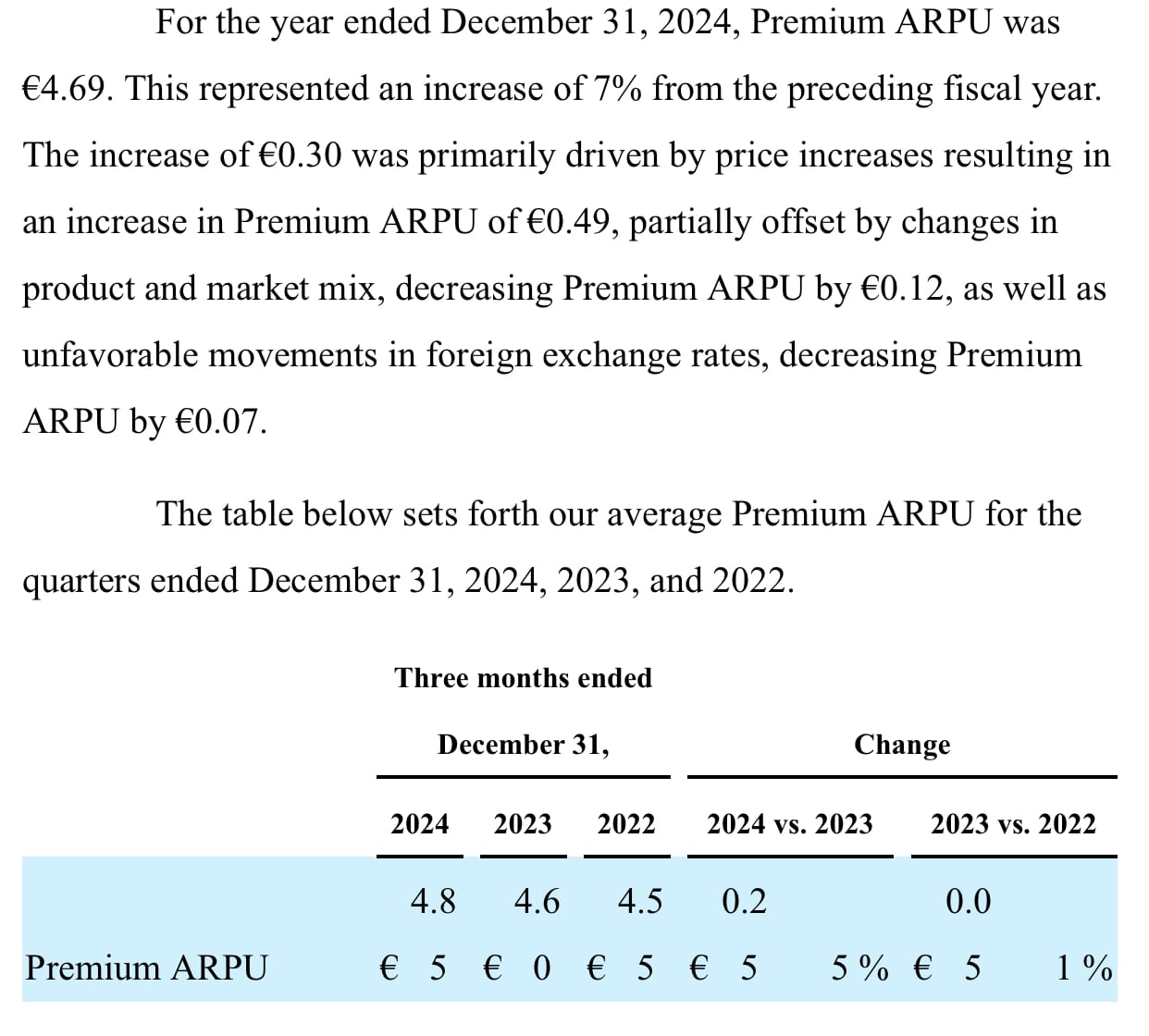 And the premium ARPU:
